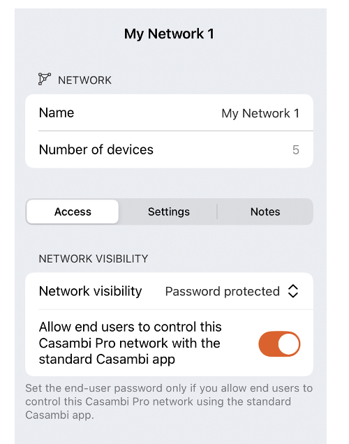 Therefore, it is generally not advisable to use normal Casambi App to configure a Pro network.However, in the case that an end user would require application control over the Pro network, the standard Casambi App can be used. This must be configured first within Pro iOS App.